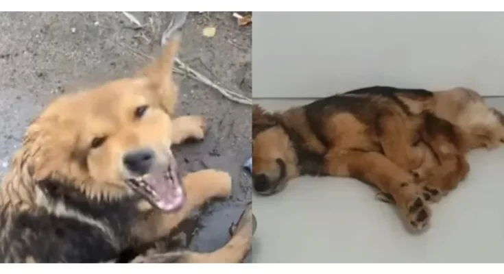 Initially, the frightened dog resisted any attempts at help. Undeterred, a group of rescuers patiently gained the dog’s trust, eventually persuading it to accept their aid.